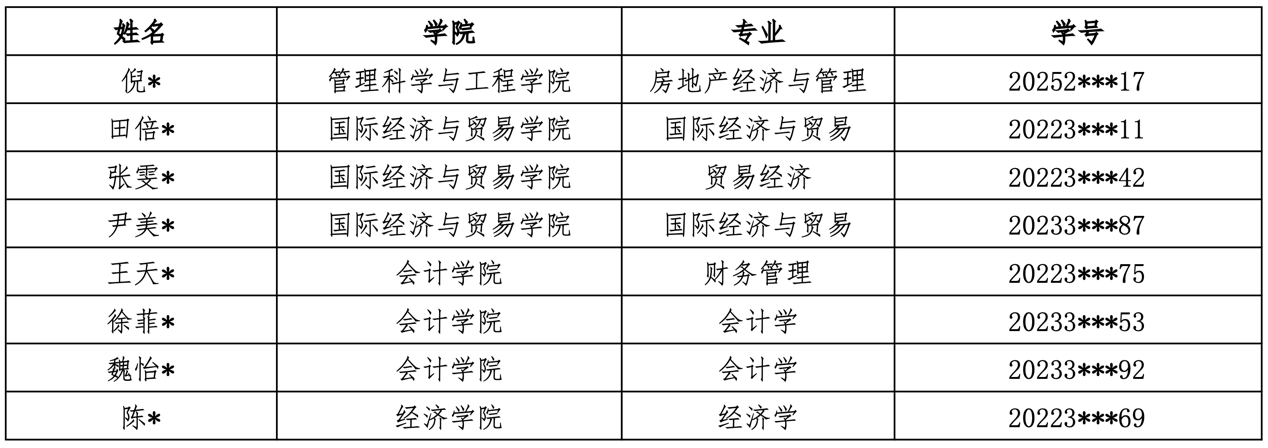 我校遵循“公开选拔、择优录取”原则,经过通知发布、学生报名、面试选拔及国际合作处审核评定等规范流程,完成亚洲基础设施投资银行2026年年会志愿者项目拟推荐人选的遴选工作,现将拟推荐的学生名单公示如下。公示时间为2026年4月10日至4月16日。