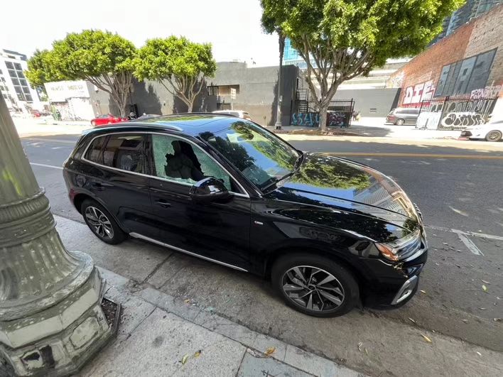 图为被砸坏的车窗